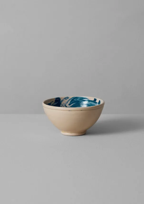 Marbled breakfast-size bowl handmade in Aubagne, southern France by artisans at Poterie Barbotine. Inspired by classic Provencal ceramics, it is hand-turned from locally sourced clay, then finished with a marbled slip pattern that varies from piece to piece. Details Earthenware. Dishwasher and microwave safe.Made in France.Each ceramic piece has been thrown or pressed and glazed by hand. Due to the handmade nature, there may be pleasing variations and irregularities in colour, size and shape.Approx. D15cm. Volume 650ml.