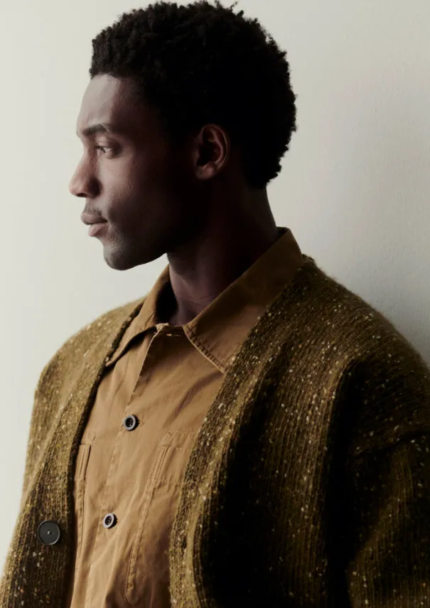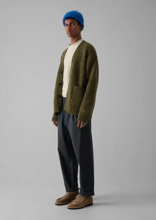 Our cardigan is knitted from weighty, flecky wool which is spun in Donegal, Ireland. With a relaxed V-neck shape accented by side patch pockets. Flecky Donegal-spun wool. V-neck. Dropped shoulders. Side pockets. Ribbed cuffs and hem. Horn buttons. Details Dry clean only. 100% wool. Made in Portugal.Soft yarns are liable to pill to some extent, even when using those of the best quality. To take good care of them remove any pills using a pilling comb and protect them from sharp items or jewellery that may catch or snag. Size & Fit Oversized. Length: Low hip. Sleeve: Full length. Studio model Lohit is 6ft 2in/189cm tall and is wearing a size M.