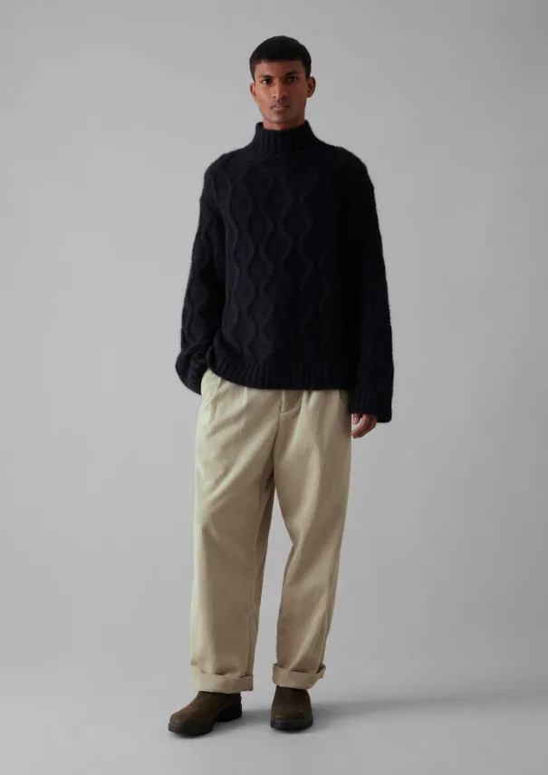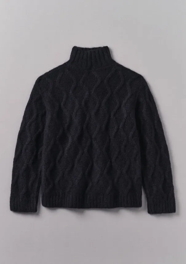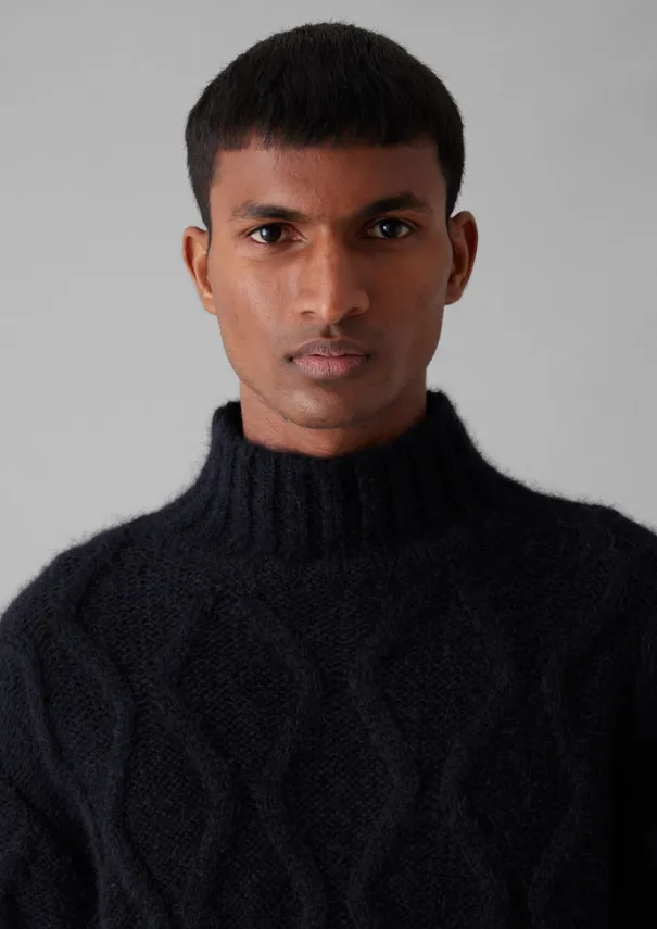 Our jumper is crafted from a superfine alpaca and merino wool blended with cotton. Knitted in Italy with a classic cable design to a relaxed shape with a roll neck. Superfine alpaca, merino wool and cotton blend. Roll neck. Ribbed edges. Rolled cuffs and hem. Details Hand wash. 55% alpaca wool, 35% cotton, 10% wool. Made in Romania.Soft yarns are liable to pill to some extent, even when using those of the best quality. To take good care of them remove any pills using a pilling comb and protect them from sharp items or jewellery that may catch or snag. Size & Fit Easy fit. Length: Low hip. Sleeve: Full length. Neck: Roll neck. Studio model Lohit is 6ft 2in/189cm tall and is wearing a size M.