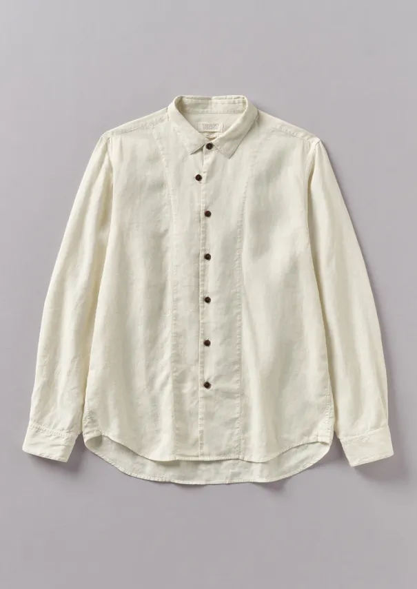 Our garment-dyed shirt features a single asymmetric rouleau loop fastening, interrupting the placket. Crafted from supple linen to a curved-hem shape with a small point collar. Part of our Menswear collection. Slubbed linen. Garment-dyed. Small point collar. Forward-sitting shoulder seams. Curved hem. Asymmetric loop. Corozo buttons. Details Machine wash 30ºC. 100% linen. Made in India.Variations/unevenness of colour and gradual fading are characteristic of garment dyeing. The light coloured base of the fabric may show occasionally at stitching points, this should not be considered a defect. Size & Fit Regular fit. Length: Mid hip. Sleeve: Full length.Studio model Theodor is 6ft 2in/188.5cm tall and wears a size M.