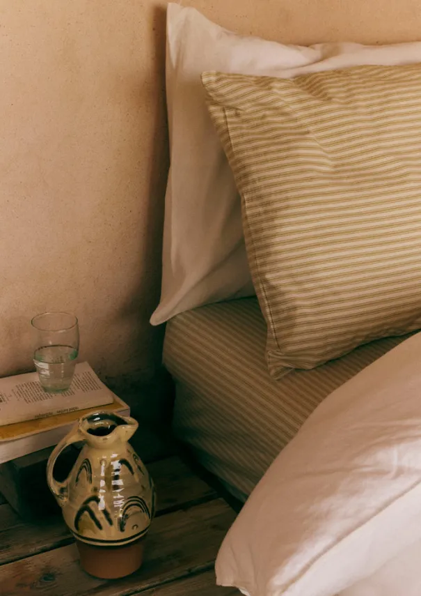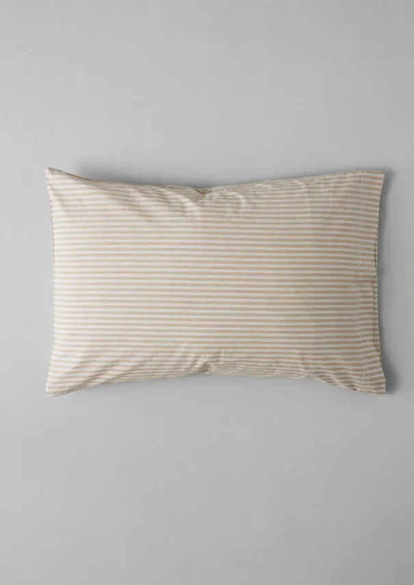 Traditional woven ticking stripe bed linen in soft, weighty, organic cotton. Two rows of satin stitch along the edge of the pillowcase. Simple envelope closure. Accompanied by a matching drawstring bag. Our organic cotton bed linen has been part of our House&Home collection at TOAST for over ten years. With wash and wear the bed linen will only become softer and more supple. Details Machine wash 60ºC. 100% organic cotton. Made in India. These cotton fibres have been grown in a chemical and pesticide free environment. 50 x 75cm. 180 thread count. Sold individually.
