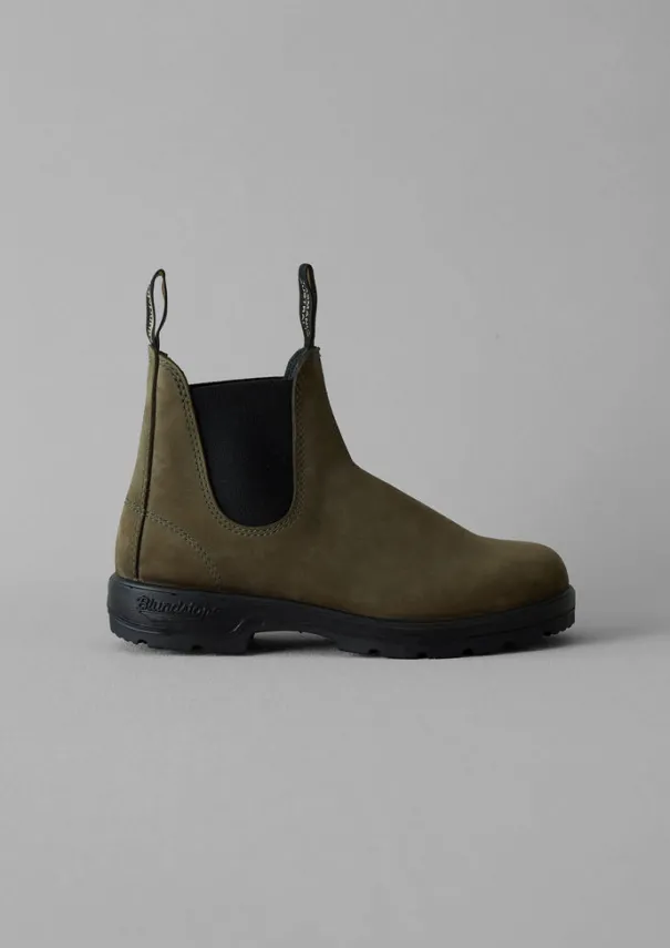 Our functional yet pared-back Blundstone boots are a reliable option for long walks. Crafted from nubuck leather with a sturdy sole and a footbed with shock protection at the heel for comfort. Nubuck leather. Elasticated side panels. Pull tabs. EVA footbed. Sturdy sole. Details Made from premium water-resistant nubuck. Leather & synthetic lining. EVA Footbed.Made in Vietnam.Heel height 3.5cm.