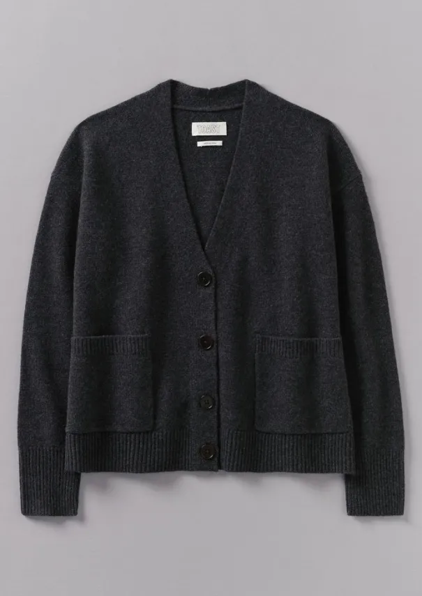 A lofty blend of wool and cashmere brings softness to our cardigan. Knitted to a boxy, loosely fitting shape with dropped shoulders and long sleeves, then finished with patch pockets. Lofty wool and cashmere blend. V neck. Dropped shoulders. Integral ribbed sleeves and hem. Ribbed patch pockets. Corozo buttons. Details Hand wash. 70% wool, 30% cashmere. Made in China.Made using recycled fibre.Soft yarns are liable to pill to some extent, even when using those of the best quality. To take good care of them remove any pills using a pilling comb and protect them from sharp items or jewellery that may catch or snag. Size & Fit Easy fit. Length: Mid hip. Sleeve: Full length. Neck: V neck.Studio model Nova is 5ft 9in/175cm tall and is wearing a size S.