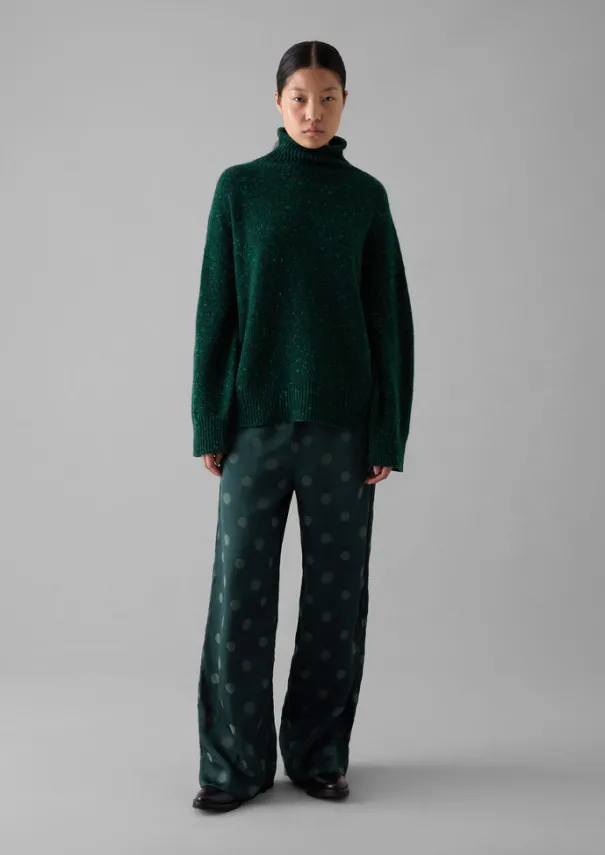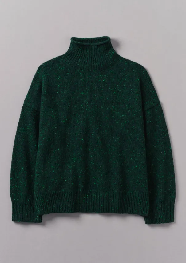 A ribbed high neck brings ease to our sweater, which is crafted from Italian spun merino wool and cashmere with a neppy texture. Shaped to a relaxed silhouette with effortless dropped sleeves, then finished with rolled edges at the neck and cuffs. Merino wool and cashmere blend. Roll neck. Dropped sleeves. Ribbed cuffs and hem. Details Hand wash. 70% merino wool, 30% recycled cashmere. Made in Romania.Soft yarns are liable to pill to some extent, even when using those of the best quality. To take good care of them remove any pills using a pilling comb and protect them from sharp items or jewellery that may catch or snag. Size & Fit Oversized. Length: Low hip. Sleeve: Full length. Neck: High neck. Studio model Nova is 5ft 9in/175cm tall and is wearing a size S/M.