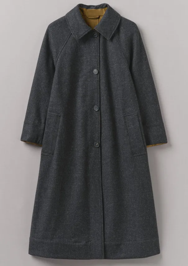 Our coat is made from cotton and finished with a neat lambswool interior, making it fully reversible. Defined by its voluminous A-line shape and raglan sleeves that give a sense of ease. Cotton and lambswool. Fully reversible. A-line shape. Raglan sleeves. Large side patch pockets. Centre-back seam. Details Dry clean only. Body: 100% cotton. Contrast: 100% wool. Pocket bags: 100% cotton. Made in Lithuania. Size & Fit Regular fit. Length: Mid calf. Sleeve: Full length. Studio model Nova is 5ft 9in/175cm tall and is wearing a size 8.