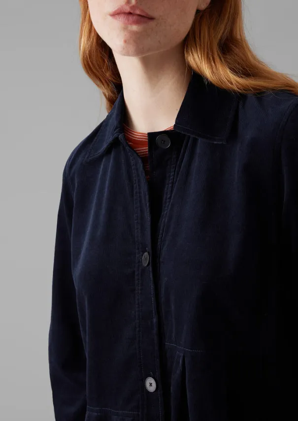 The panelled construction of our dress is complemented by the full, swingy shape. Crafted from an organic cotton needlecord and cut with a neat collar and buttons running through the front. 21-wale organic cotton cord. Collar. Full shape. Bust darts. Horn buttons. Details Machine wash 30ºC. 100% cotton. Made in China.These cotton fibres have been grown in a chemical and pesticide free environment. Size & Fit Regular fit. Length: Mid calf. Sleeve: Wristbone length. Studio model Haley is 5ft 9in/175cm tall and is wearing a size 8.