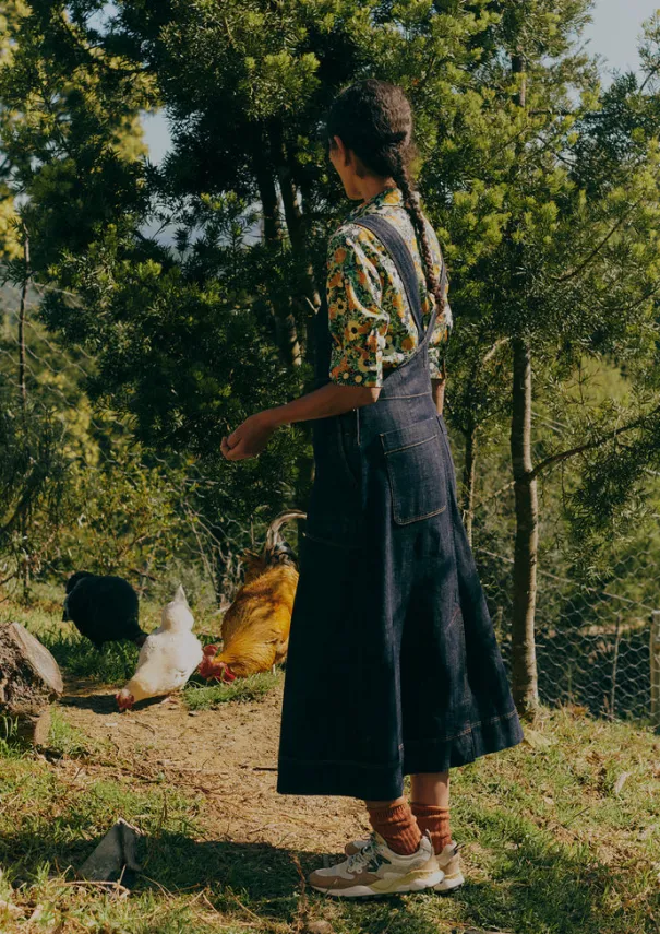 A pinafore back and contrasting topstitching brings a 1970s inflection to our dress. Crafted from organic cotton denim which is dyed with a technique that uses up to 70% less water than regular processes. Finished with corozo buttons at each side. Organic cotton denim. Topstitching. Square neck. Pinafore back. Centre-front and centre-back seams. Side patch pockets. Back patch pockets. Side corozo buttons. Details Machine wash 40ºC gentle cycle. 98% cotton, 2% elastane. Lining: 100% cotton. Made in Turkey.There will be colour rub when new but with wash and wear the indigo will fade subtly and beautifully. Size & Fit Regular fit. Length: Lower calf. Sleeve: Sleeveless. Studio model Kelia is 5ft 8in/173cm tall and is wearing a size 8.