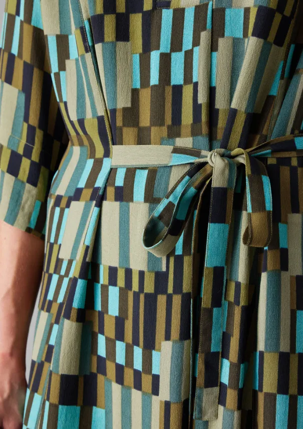 An irregular check pattern runs across our crepe dress. Cut with a cross-over V-neck and wide sleeves with a full midi-length skirt and waist tie. Printed viscose crepe. V-neck. Midi skirt. Mid-length sleeves. Waist tie. Details Machine wash 30ºC. 100% viscose. Made in India. Size & Fit Easy fit. Length: Lower calf. Sleeve: Bracelet length.Studio model Maggie is 5ft 8in/172cm tall and is wearing a size S.