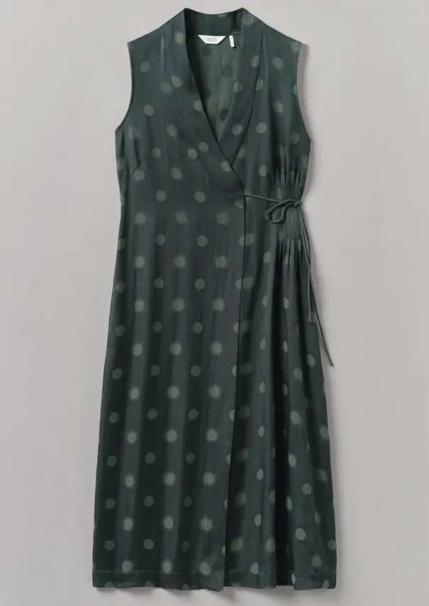 Our dress is crafted from a linen and cotton blend, woven with jacquard sun and moon motifs. The fluid style is defined with side pleats and finished with a tie fastening. Jacquard viscose, linen and cotton blend. Side pleats. Side tie. Back neck dart. Side seam pockets. Details Machine wash 30ºC gentle cycle. 54% viscose, 28% cotton, 18% linen. Made in China. Size & Fit Regular fit. Length: Mid calf. Sleeve: Sleeveless. Studio model Nova is 5ft 9in/175cm tall and is wearing a size 8.
