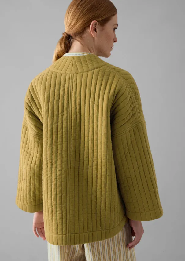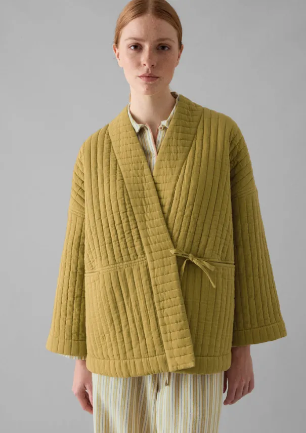 Our cocooning gown is crafted from double cloth gauze, cut to a boxy shape with wide, cropped sleeves and a soft quilted finish. Double cloth gauze. Yarn dyed. Recycled polyester wadding. Relaxed fit. Details Machine wash 30ºC gentle cycle. 100% cotton. Wadding: 100% recycled polyester. Made in India. Size & Fit Oversized. Length: Top thigh. Sleeve: Wristbone length. Studio model Haley is 5ft 9in/175cm tall and is wearing a size S/M.