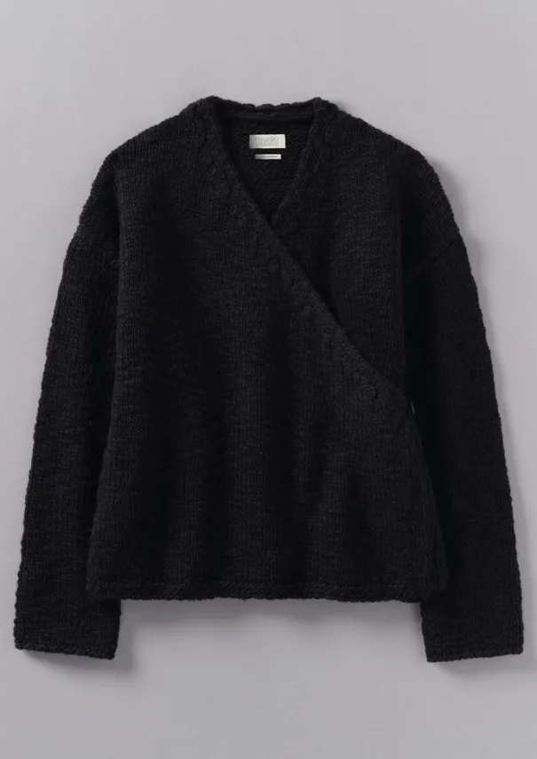 Our wrap jacket is knitted from wool, then shaped with dropped sleeves. Fastening with the internal ties together with a corozo button at the side. Knitted wool. High V-neck. Wrap front. Dropped sleeves. Internal ties. Corozo button. Details Dry clean only. 100% wool. Made in Romania.Soft yarns are liable to pill to some extent, even when using those of the best quality. To take good care of them remove any pills using a pilling comb and protect them from sharp items or jewellery that may catch or snag. Size & Fit Easy fit. Length: Mid hip. Sleeve: Full length. Neck: V neck. Studio model Haley is 5ft 9in/175cm tall and is wearing a size S/M.