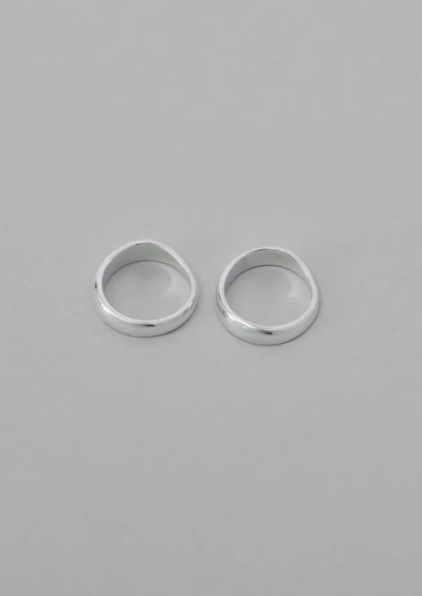 Set of two organic-shaped rings crafted by Spanish jeweller Helena Rohner. The sterling silver is flattened and shaped to a simple band, designed to be stacked together or with other rings. Details 100% recycled silver. Silver oxidises naturally. You can clean and polish silver pieces using jewellery cloths to keep them looking their best. It is important not to use chemical products which may stain the metal.Made in Spain.S fits ring size M, M fits ring size O, L fits ring size P 1/2.