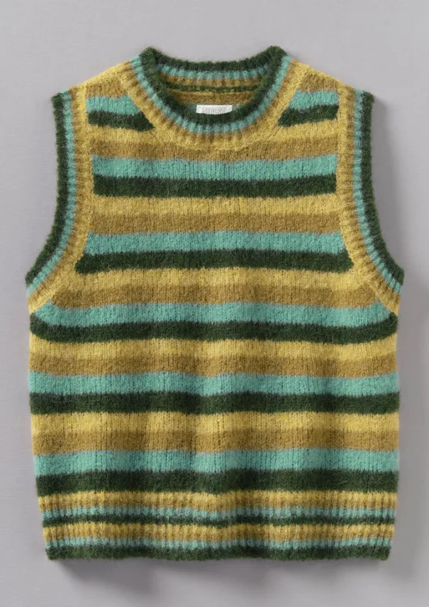Our striped tank is made from alpaca and merino wool fibres which are spun in Italy and brushed for softness. Knitted to a crew neck shape that can be layered over shirts and dresses. Alpaca and merino wool blend. Easy shape. Crew neck. Top-hip length. Integral ribbed edges. Details Hand wash. 60% baby alpaca, 25% merino wool, 15% polyamide.Made in Portugal.Soft yarns are liable to pill to some extent, even when using those of the best quality. To take good care of them remove any pills using a pilling comb and protect them from sharp items or jewellery that may catch or snag. Size & Fit Regular fit. Length: Top hip. Sleeve: Sleeveless. Neck: Crew.Studio model Nova is 5ft 9in/175cm tall and is wearing a size S.