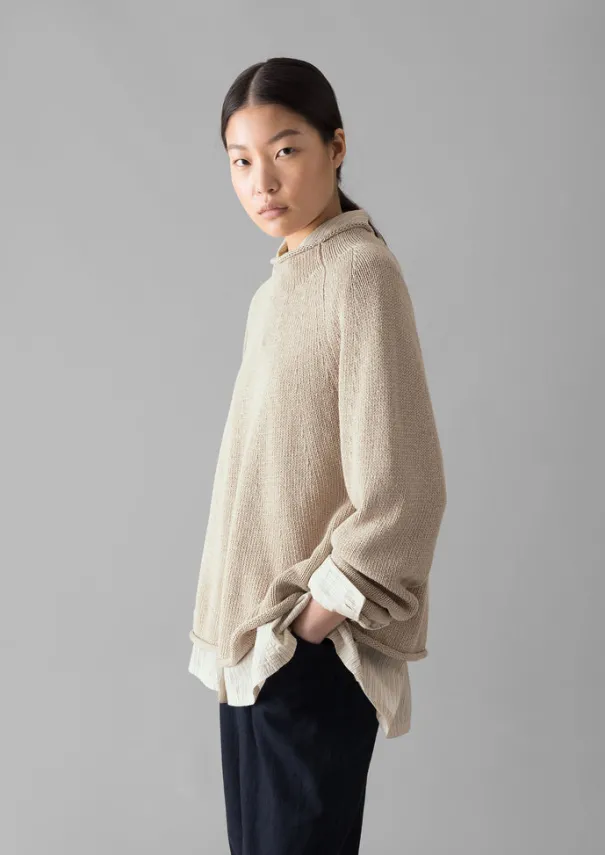 Our swingy, easy sweater has shaping at the yoke for a considered shape. Crafted from a textured, weighty linen and organic cotton blend to a high-neck silhouette with raglan sleeves, then finished with rolled edges. Linen and cotton blend. High neck. Shaped yoke. Raglan sleeves. Rolled edges. Details Hand wash. 55% cotton, 45% linen. Made in China.Soft yarns are liable to pill to some extent, even when using those of the best quality. To take good care of them remove any pills using a pilling comb and protect them from sharp items or jewellery that may catch or snag. Size & Fit Easy fit. Length: Mid hip. Sleeve: Full length. Neck: High neck.Studio model Nova is 5ft 9in/175cm tall and is wearing a size XXS/XS.
