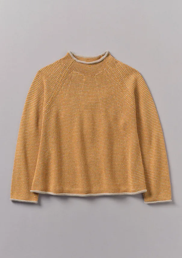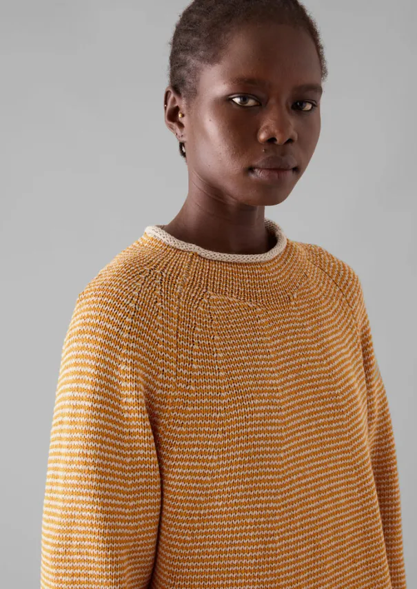 Our swingy striped sweater has shaping at the yoke for a considered silhouette. Crafted from a textured linen and cotton blend to a high-neck silhouette with raglan sleeves, then finished with rolled edges. Linen and cotton blend. Easy shape. High neck. Shaped yoke. Raglan sleeves. Side pocket. Mid-hip length. Rolled edges. Details Hand wash. 55% linen, 45% cotton. Made in China.Soft yarns are liable to pill to some extent, even when using those of the best quality. To take good care of them remove any pills using a pilling comb and protect them from sharp items or jewellery that may catch or snag. Size & Fit Easy fit. Length: Mid hip. Sleeve: Full length. Neck: High neck.Studio model Piath is 5ft 10in/178cm tall and is wearing a size XXS/XS.