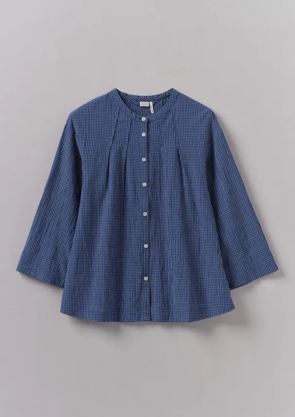 Artful pintucked darts at the neckline bring volume through the body of our shirt. Made from a check crinkle cotton with dropped sleeves and side hem slits. Check crinkle cotton. Band collar. Neck pintucked darts. Dropped sleeves. Side hem slits. Corozo buttons. Details Machine wash 30ºC. 100% cotton. Made in India. Size & Fit Regular fit. Length: Low hip. Sleeve: Bracelet length. Studio model Nova is 5ft 9in/175cm tall and is wearing a size S.