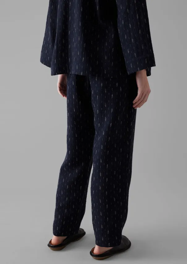 The dobby stitch lends subtle texture to our pull-on lounge trousers. Falling from an elasticated drawstring waist to an easy shape with side-seam pockets. Dobby stitch cotton. Easy shape. Cropped legs. Elasticated drawstring waist. Back hanging loop. Side seam pockets. Back patch pocket. Details Machine wash 30ºC gentle cycle. 100% cotton. Made in India.There will be colour rub when new but with wash and wear the indigo will fade subtly and beautifully. Size & Fit Regular fit. Length: Ankle skimming. Waist: Below waist. Studio model Nova is 5ft 9in/175cm tall and is wearing a size S.