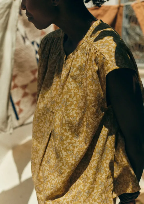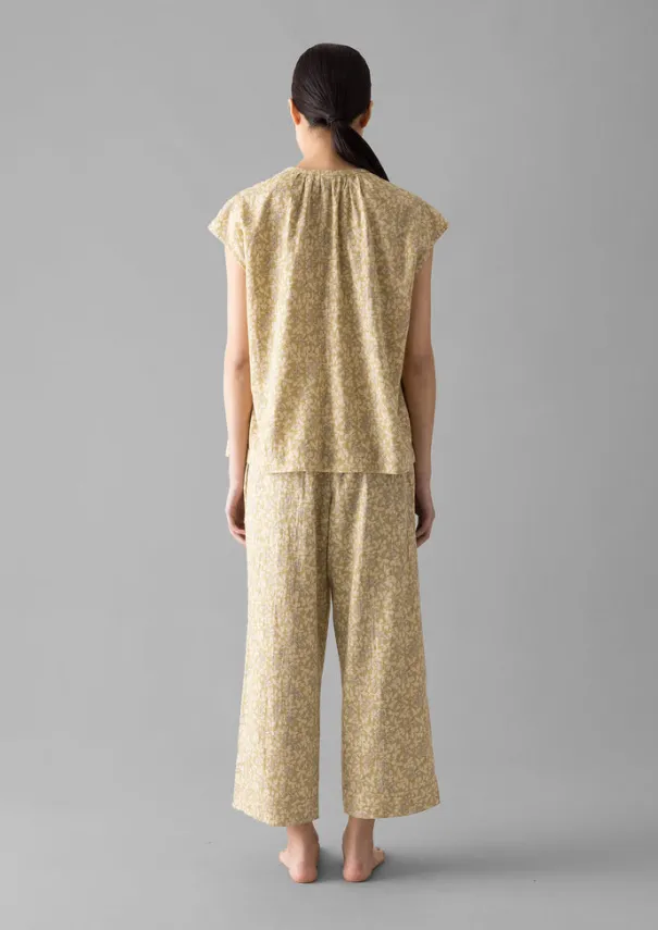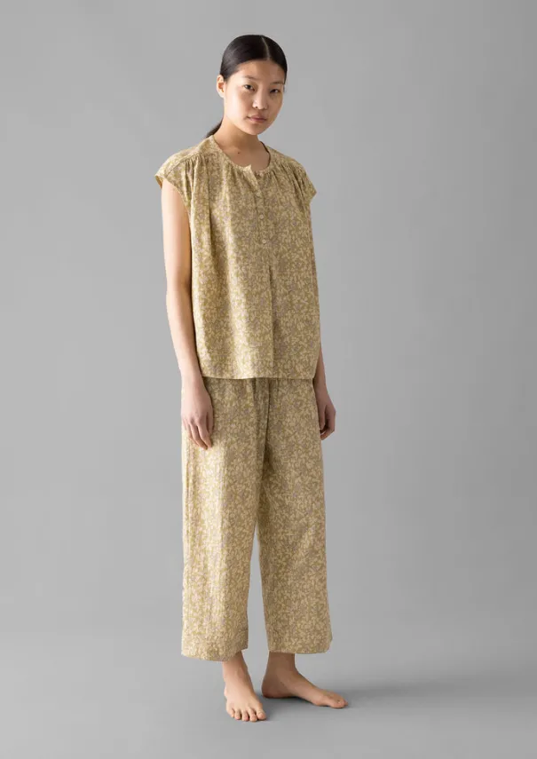 A collage floral print brings a touch of romance to our pyjamas, which are crafted from organic cotton. The top has gathers along the shoulder seam and neckline, while the trousers have a stitched cuff detail on the trouser hems and a comfortable elasticated drawstring waist. Printed organic cotton. Top: Gathered neck, shoulders and back. Side splits. Corozo buttons. Trousers: Elasticated drawstring waist. Side seam pockets. Stitch detail on hem. Details Machine wash 40ºC gentle cycle. 100% cotton. Made in India.This fabric has been screen printed by hand. Each piece is unique and colours and texture will vary. These irregularities are characteristic of this lovely print method and are not considered faults. Size & Fit Easy fit. Length: Low hip. Waist: On the waist. Sleeve: Cap. Studio model Nova is 5ft 9in/175cm tall and is wearing a size S.
