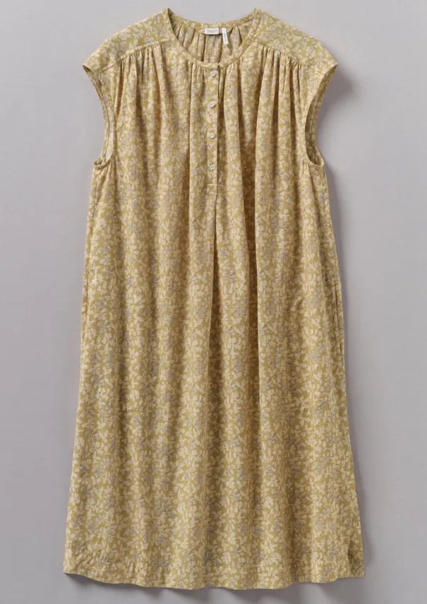A collage floral print blooms across our organic cotton nightdress. Shaped with gathers at the shoulders and neck, then finished with side pockets. Organic collage floral print cotton. Easy shape. Band collar. Gathered shoulders and neck. Side Pockets. Side hem slits. Half placket. Details Machine wash 40ºC gentle cycle. 100% cotton. Made in India.These cotton fibres have been grown in a chemical and pesticide free environment.This fabric has been screen printed by hand. Each piece is unique and colours and texture will vary. These irregularities are characteristic of this lovely print method and are not considered faults. Size & Fit Easy fit. Length: Upper calf. Sleeve: Cap. Studio model Nova is 5ft 9in/175cm tall and is wearing a size S.