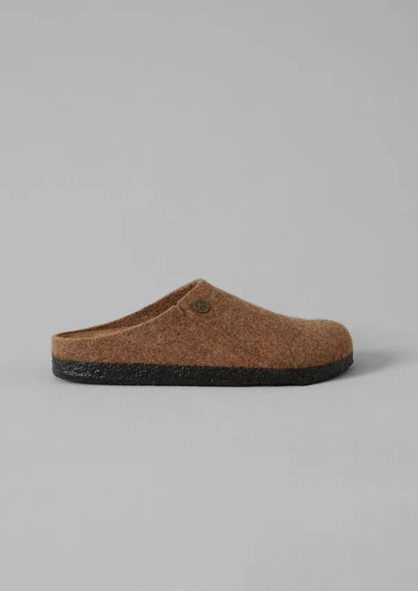 Zermatt slippers from Birkenstock, which traces its history back to 1774. Crafted from supple wool felt with a round toe, then set on a natural rubber sole. Soft wool-felt upper and shearling footbed for warmth. Open, mule-style back. Flexible, anti-slip latex sole. Narrow fit. Details Wool felt upper. Natural leather insole. Cork latex sole.Made in Germany.Heel height 2cm.