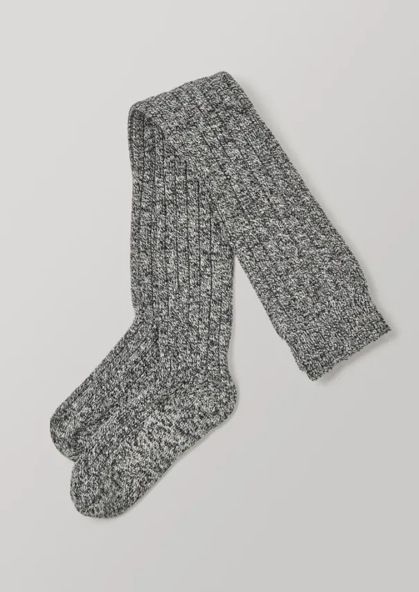Over-the-knee socks knitted by Swedish Stockings from a GOTS-certified organic cotton blend which is slubby and textured. Containing recycled polyamide and elastane fibres. The factory is powered by renewable energy and water used in the dyeing process is purified after use. Can be worn over the knee or gathered below. Details Machine delicate wash 30°C. 80% organic cotton, 17% recycled polyamide, 3% recycled elastane.Made in Türkiye. S/M – 36-38. M/L – 39-41.
