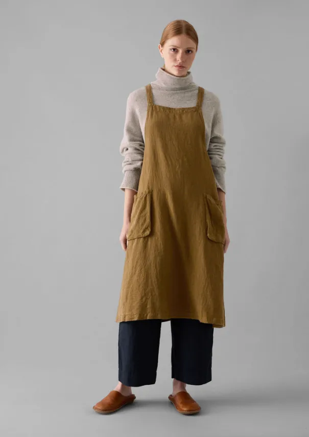 Pinafore apron crafted from hardwearing, slubby linen, then garment-dyed. Cut to a roomy shape with a square neck, turning to reveal crossover straps at the back, then finished with large patch pockets. Details Machine wash 40ºC. 100% linen.Made in Lithuania.Length 94cm.Variations/unevenness of colour and gradual fading are characteristic of garment dyeing. The light coloured base of the fabric may show occasionally at stitching points, this should not be considered a defect.