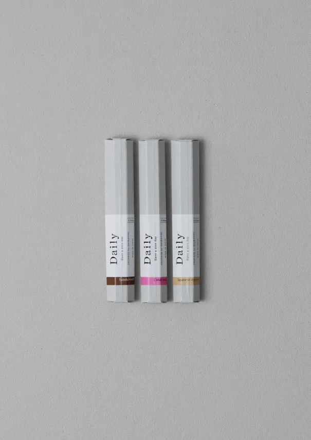 Set of traditional incense sticks designed by Yasuhiro Horiuchi and created on Awaji Island in Hyogo Prefecture, Japan. Approximately 45 sticks come in minimal paper packaging. Each stick burns with minimal dust for up to 30 minutes, infusing the air with Japanese scents. Details Approx. 45 sticks per box, burn time approx. 30 minuets per stick.Made in Japan.Package size: H 2.4cm x W 14.2cm x D 1.9cm.