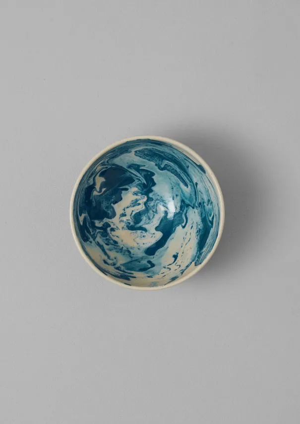 Marbled breakfast-size bowl handmade in Aubagne, southern France by artisans at Poterie Barbotine. Inspired by classic Provencal ceramics, it is hand-turned from locally sourced clay, then finished with a marbled slip pattern that varies from piece to piece. Details Earthenware. Dishwasher and microwave safe.Made in France.Each ceramic piece has been thrown or pressed and glazed by hand. Due to the handmade nature, there may be pleasing variations and irregularities in colour, size and shape.Approx. D15cm. Volume 650ml.