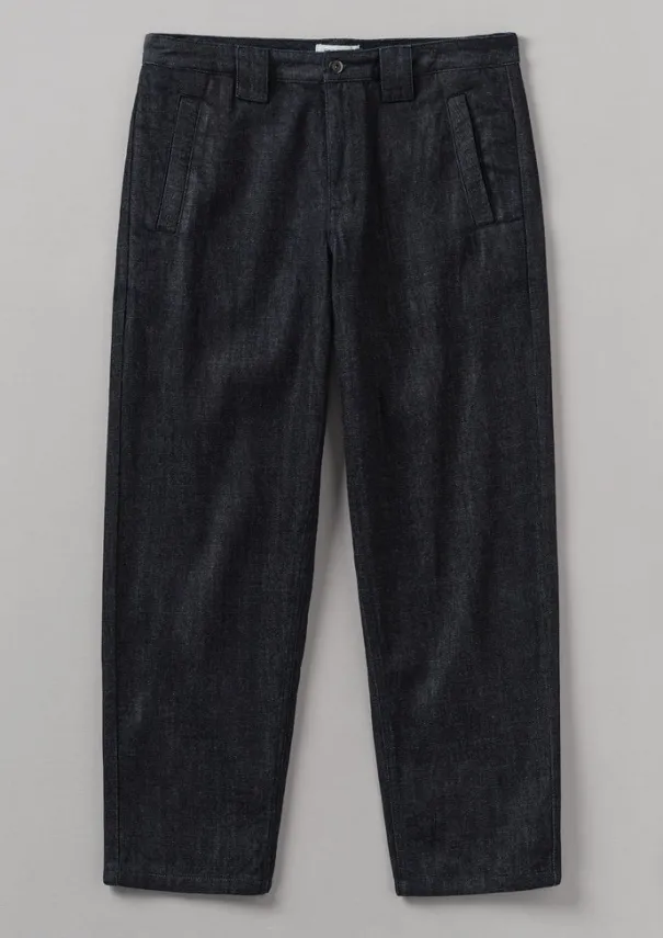 Our tapered jeans are crafted from cotton denim dyed and woven on traditional shuttle looms in Ibara City in Okayama, Japan. The water used during the dyeing process is treated to Seto Inland Sea Regulation standards, allowing it to be returned to the river where the water irrigation systems are connected to the vegetable fields and rice paddies of Okayama. Cut with tapered legs punctuated by welt side pockets and back patch pockets. Part of our Menswear collection. Japanese cotton denim. Tapered legs. Back patch pockets. Belt loops. Shank button and zip fly. Details Machine wash 30ºC gentle cycle. 100% cotton. Made in China.There may be some colour rub, so please keep away from light coloured fabrics and upholstery. Size & Fit Oversized. Length: Full length. Waist: Below waist. Studio model Lohit is 6ft 2in/189cm tall and is wearing a size M.