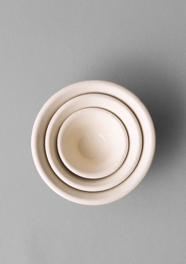 Set of three nesting bowls by the small team at Willow Pottery, founded over 25 years ago and based just outside Bath. Hand-thrown exclusively for TOAST to a tapered shape with a chunky rim. The raw unglazed outer is juxtaposed by the smooth glazed interior. Each varies slightly in shape and glaze tone.DetailsHand wash. Terracotta. Made in the United Kingdom.Each ceramic piece has been thrown or pressed and glazed by hand. Due to the handmade nature, there may be pleasing variations and irregularities in colour, size and shape.Small bowl approx. D 12cm x H 6cm, medium bowl approx. D 16.5cm x H 7.5cm, largest bowl approx. D 22cm x H 9.5cm.