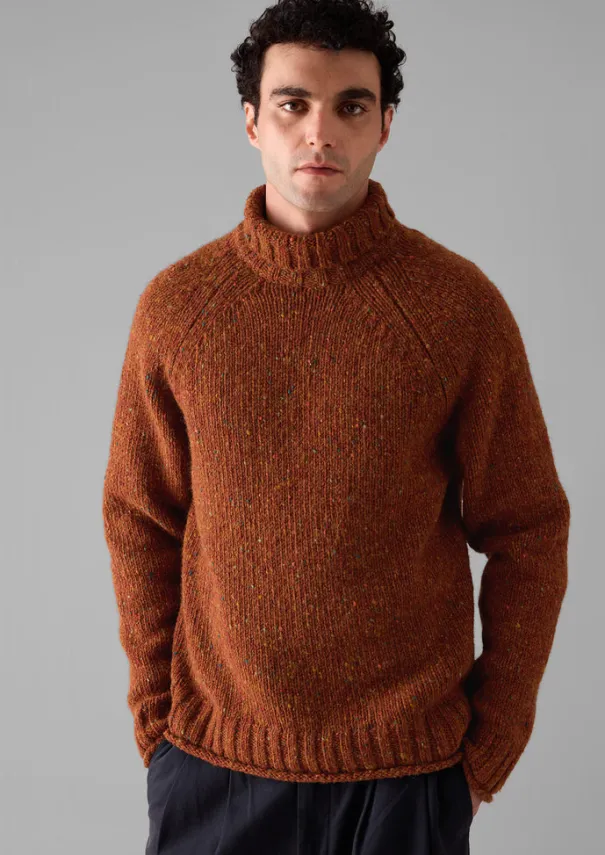 Our roll-neck sweater is crafted from soft and textured wool which is spun and dyed in Donegal, Ireland. Knitted to an easy shape with raglan sleeves and rolled edges at the cuffs and hem. Part of our Menswear collection. Chunky Donegal-spun wool. Easy shape. Roll neck. Raglan sleeves. Ribbed edges. Rolled cuffs and hem. Details Hand wash. 100% wool.Made in Romania. Soft yarns are liable to pill to some extent, even when using those of the best quality. To take good care of them remove any pills using a pilling comb and protect them from sharp items or jewellery that may catch or snag. Size & Fit Easy fit. Length: Low hip. Sleeves: Full length. Neckline: Roll neck.Studio model Dylan is 6ft 1in/186cm tall and wears a size M.