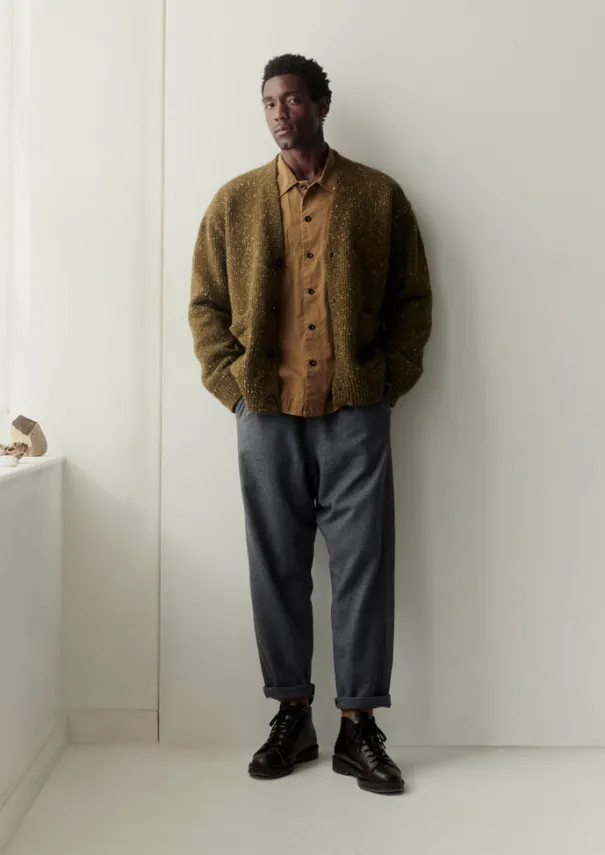 Our cardigan is knitted from weighty, flecky wool which is spun in Donegal, Ireland. With a relaxed V-neck shape accented by side patch pockets. Flecky Donegal-spun wool. V-neck. Dropped shoulders. Side pockets. Ribbed cuffs and hem. Horn buttons. Details Dry clean only. 100% wool. Made in Portugal.Soft yarns are liable to pill to some extent, even when using those of the best quality. To take good care of them remove any pills using a pilling comb and protect them from sharp items or jewellery that may catch or snag. Size & Fit Oversized. Length: Low hip. Sleeve: Full length. Studio model Lohit is 6ft 2in/189cm tall and is wearing a size M.