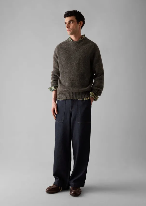 Our sweater is crafted from undyed Shetland wool by a family-run company in the small harbour town of Peterhead, Scotland. Knitted “in the round”, making it seamless, and finished with a slash neck. Part of our Menswear collection. Shetland wool. Seamless. Slash neck. Integral ribbed neck, cuffs and hem. Details Hand wash. 100% wool. Made in the United Kingdom.Soft yarns are liable to pill to some extent, even when using those of the best quality. To take good care of them remove any pills using a pilling comb and protect them from sharp items or jewellery that may catch or snag. Size & Fit Easy fit. Length: Mid hip. Sleeve: Full length. Studio model Dylan is 6ft 1in/186cm tall and wears a size M