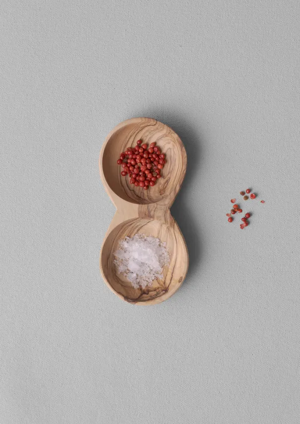 Rounded pinch pot for table seasoning, carved from olive wood by hand in Tunisia. Each varies slightly in shape and colour. To maintain, rub with olive or corn oil. Details Olive wood. Simply wash in warm water with soap and then dry. Not dishwasher safe.Made in Tunisia.Approx. L 16cm x W 7.5cm.