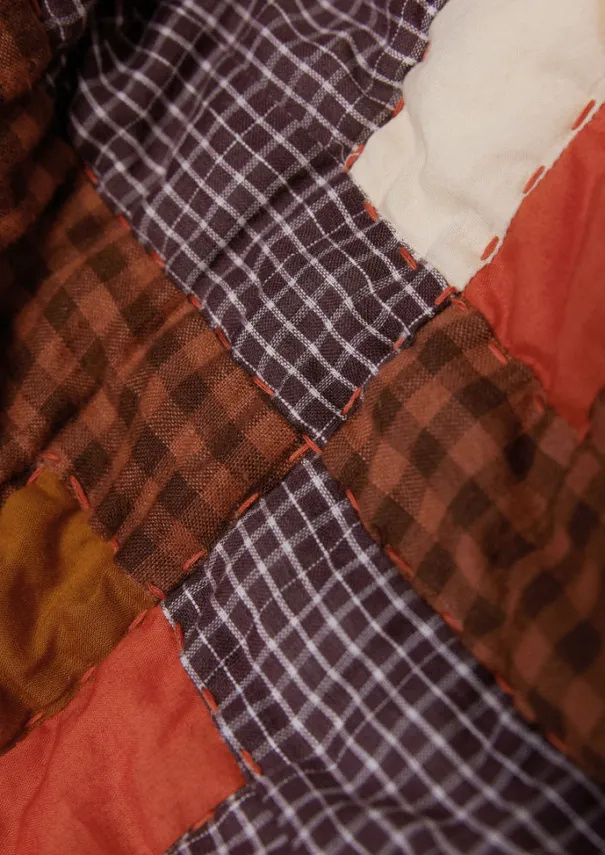 Soft patchwork quilt featuring hand-woven checks on cotton cambric. Crafted in India with a plain cotton voile reverse and soft cotton wadding then finished with tactile hand-stitched quilting. Details Dry clean only. Outer shell: 100% cotton. Wadding: 100% cotton. Made in India.215cm x 240cm.