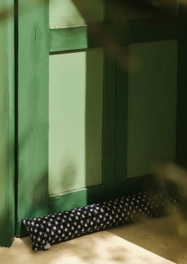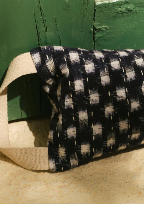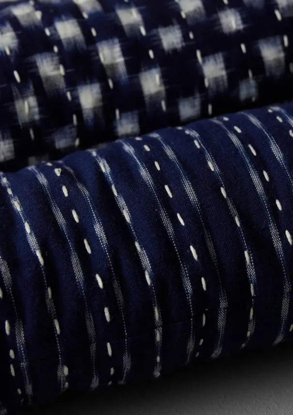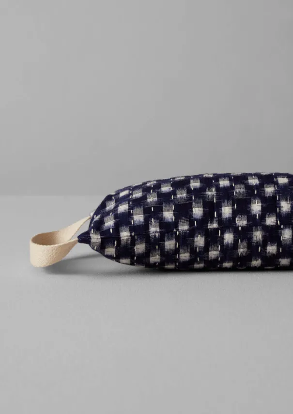 Draught excluder made from remnant handwoven ikat quilted fabrics sourced from past TOAST collections. Hand kantha-stitched, with internal layers of repurposed saris and offcut fabrics. Finished with a herringbone tape handle. Filled with recycled cotton wadding. Details Dry clean only. Main fabric: 100% cotton. Wadding: 100% cotton. Made in India.An age-old and complex technique of patterning cloth, whereby the pattern is pre-determined by tie-dyeing the yarn prior to weaving. The characteristic haziness of the pattern that emerges is a pleasing result of this hand process.L 90cm x W 16cm.