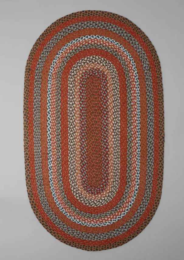 Durable double-sided rug, hand-braided by artisans in Bangladesh. Crafted to an elongated oval shape from locally sourced organic jute with a colourful striped pattern and softly curved edge. The Braided Rug Company is accredited by the National Fair Trade Network of Bangladesh, a World Fair Trade Organisation. The factory runs on solar energy, and rainwater is used during the dyeing process. Details 100% organic jute. Surface clean only. Made in Bangladesh.Approx. 91cm x 152cm.