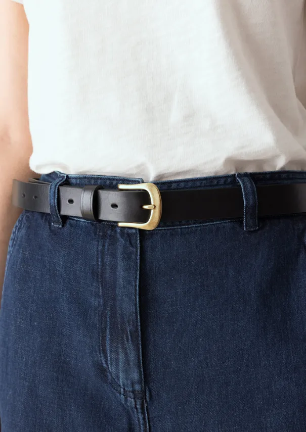 Smooth, vegetable tanned, Italian leather. Ecru stitch detail. Antique brass effect buckle. Details 100% cow leather, 100% brass hardware.Made in Italy.Width 2.5cm. S to fit 72-87cm, M to fit 77-92cm, L to fit 82-97cm. There may be some colour rub, so please keep away from light coloured fabrics and upholstery.