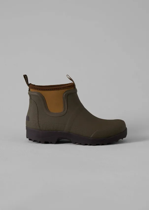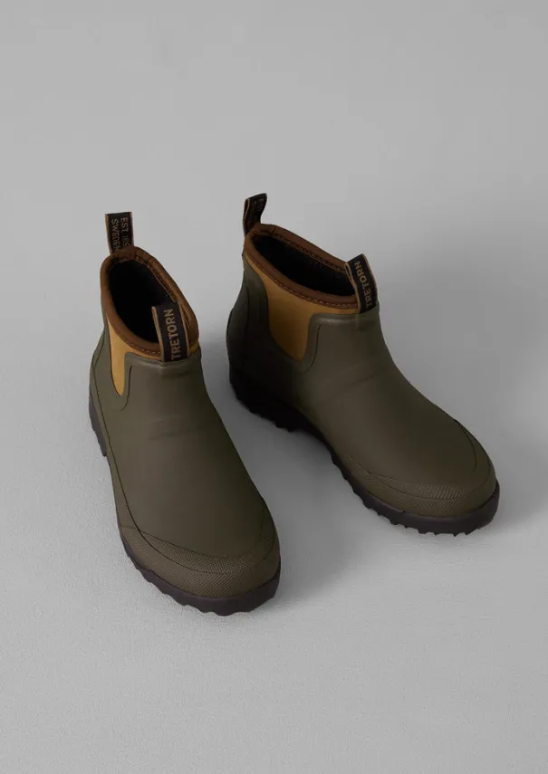 Comfortable boots made from natural rubber by Tretorn, which was founded in 1891 in Helsingborg, Sweden. With a recycled polyester lining and neoprene panel for warmth, created without the use of chlorine. Waterproof natural rubber. Neoprene panel. Pull tabs. Recycled polyester lining. Chunky tread sole. Details Natural rubber upper and outsole, neoprene lining with 100% recycled polyester, EVA insole.Made in China.Heel height 3cm.Although durable, natural rubber may require additional care compared to synthetic versions and it is best to avoid heavy mud. If you get caught in these weather conditions, remove any dirt and dry at room temperature for longevity.