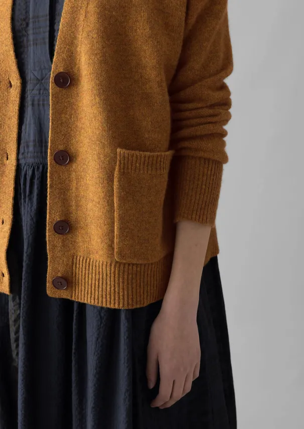 A lofty blend of wool and cashmere brings softness to our cardigan. Knitted to a boxy, loosely fitting shape with dropped shoulders and long sleeves, then finished with patch pockets. Lofty wool and cashmere blend. V neck. Dropped shoulders. Integral ribbed sleeves and hem. Ribbed patch pockets. Corozo buttons. Details Hand wash. 70% wool, 30% cashmere. Made in China.Made using recycled fibre.Soft yarns are liable to pill to some extent, even when using those of the best quality. To take good care of them remove any pills using a pilling comb and protect them from sharp items or jewellery that may catch or snag. Size & Fit Easy fit. Length: Mid hip. Sleeve: Full length. Neck: V neck.Studio model Nova is 5ft 9in/175cm tall and is wearing a size S.