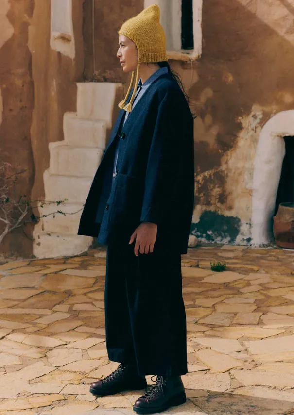 Crafted from a weighty boiled wool for warmth, the fibres of our short coat are dyed, spun and woven in the same mill in Yorkshire, Abraham Moon. It was founded in 1837 and is one of the last remaining vertical woollen mills in the UK. Cut to a voluminous shape accented with horn buttons and finished with a full lining. British wool. Easy shape. Raglan sleeves. Large side patch pockets. Fully lined. Internal hanging loop. Horn buttons. Details Dry clean only. 100% wool. Body lining: 100% cotton. Sleeve lining: 51% viscose, 49% cotton. Made in Romania. Size & Fit Oversized. Length: Mid thigh. Sleeve: Wristbone length. Studio model Haley is 5ft 9in/175cm tall and is wearing a size S/M.