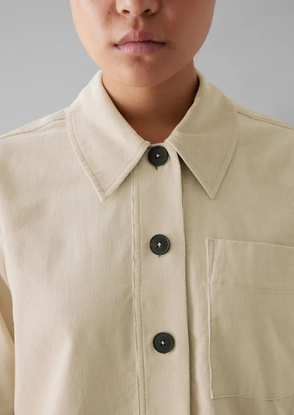 Our shirt has a large patch pocket which balances the exaggerated collar. Crafted from cord and cut to a boxy shape, then accented by horn buttons. Cord. Exaggerated collar. Chest patch pocket. Back yoke panel. Back box pleat. Side hem slits. Horn buttons. Details Machine wash 30ºC. 100% cotton. Made in China.These cotton fibres have been grown in a chemical and pesticide free environment. Size & Fit Regular fit. Length: Low hip. Sleeve: Wristbone length. Studio model Nova is 5ft 9in/175cm tall and is wearing a size 8.