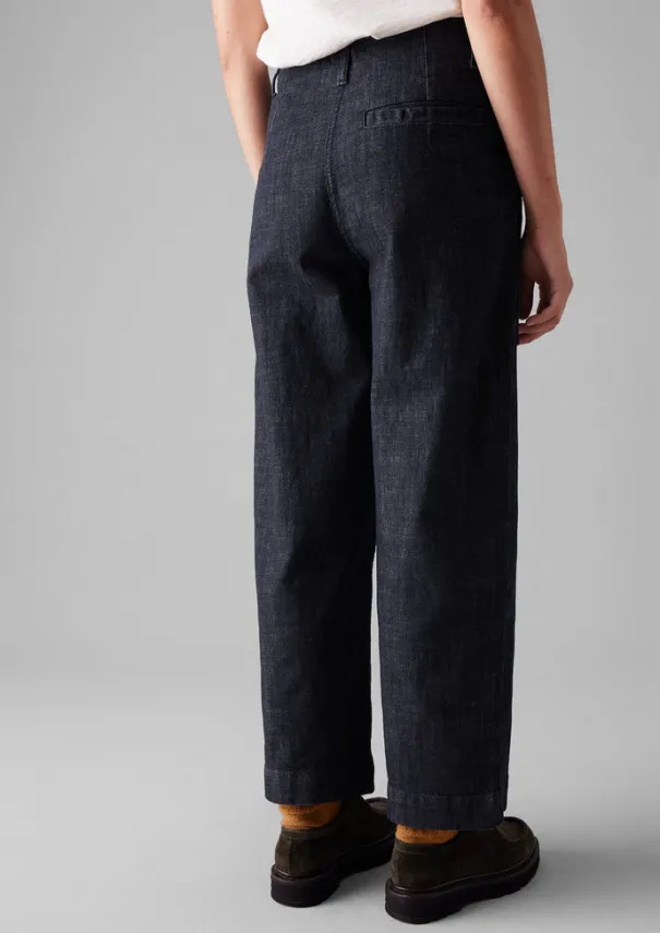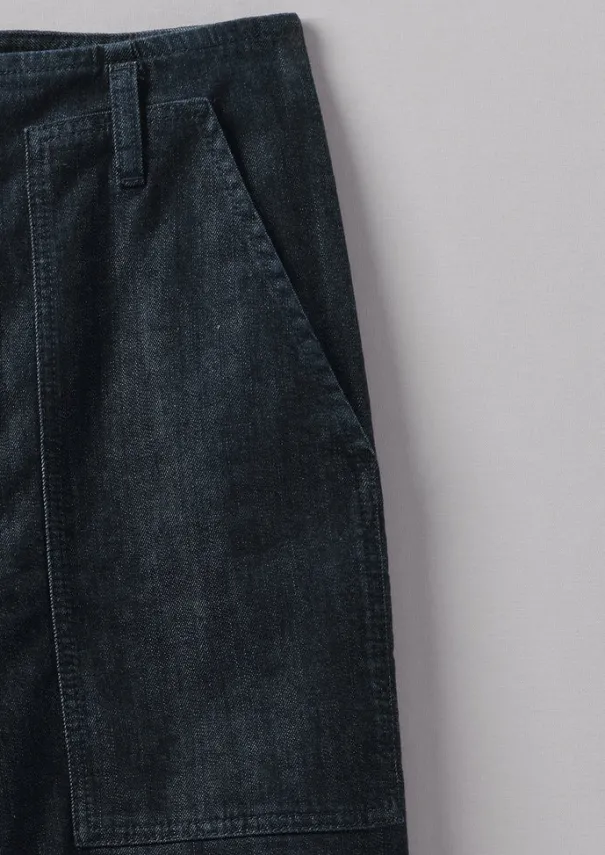 Large carpenter patch pockets highlight the workwear influences behind our trousers. Crafted from organic cotton denim which is dyed with a technique that uses up to 70% less water than regular processes. Cut to a tapered leg shape and finished with a single back welt pocket. Organic cotton Denim. Belt loops. Large carpenter patch pockets. Back welt pocket. Tapered legs. Zip and corozo buttons. Details Machine wash 40ºC gentle cycle. Body: 98% cotton, 2% elastane. Lining: 100% cotton. Made in Turkey.There will be colour rub when new but with wash and wear the indigo will fade subtly and beautifully. Size & Fit Regular fit. Length: Ankle length. Waist: On the waist. Studio model Maggie is 5ft 8in/172cm tall and is wearing a size 8.