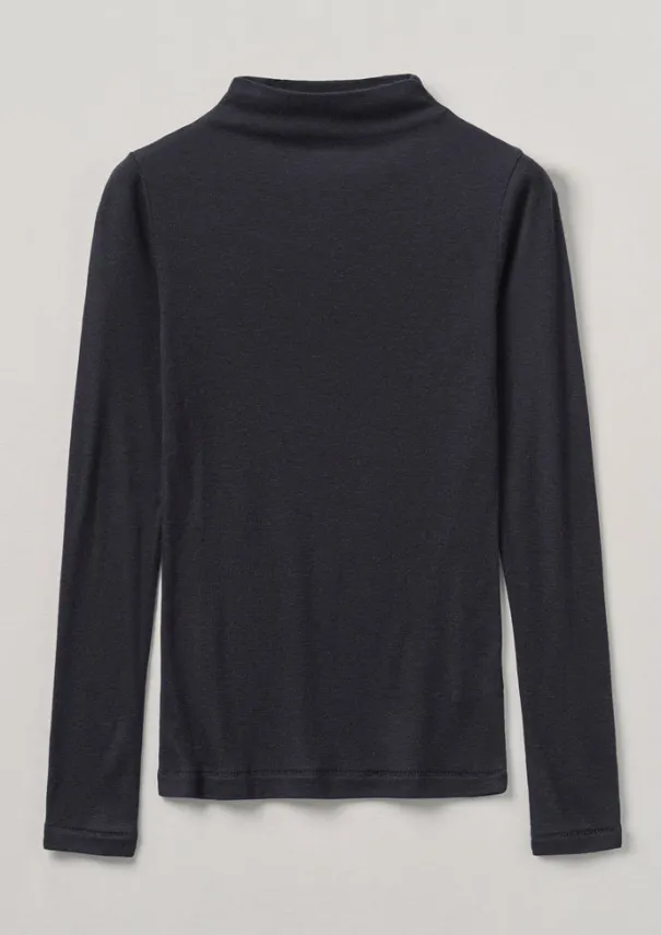 Our tee is crafted from soft jersey which is knitted from a blend of wool and lyocell, a cellulose fibre obtained from controlled and certified sources. Cut to a neat silhouette for effortless layering, with elongated sleeves. Lyocell and wool-blend jersey. High neck. Elongated sleeves. Baseball-stitched cuffs and hem. Details Machine wash 30ºC gentle cycle. 71% lyocell, 29% wool.Made in Portugal. Size & Fit Regular fit. Length: Low hip. Sleeves: Full length. Neckline: High neck.Studio model Nova is 5ft 9in/175cm tall and is wearing a size S.