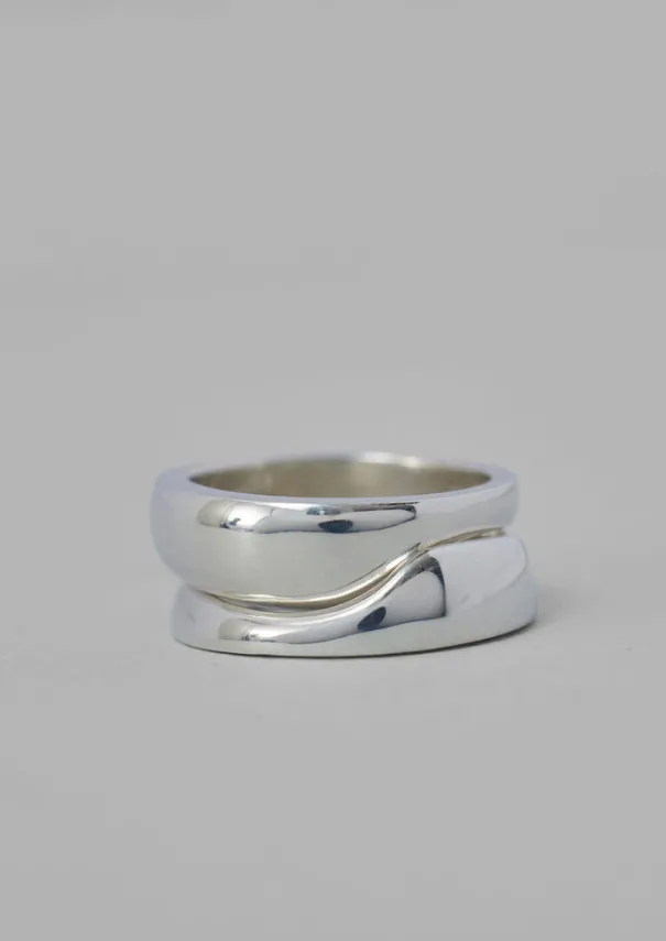 Set of two organic-shaped rings crafted by Spanish jeweller Helena Rohner. The sterling silver is flattened and shaped to a simple band, designed to be stacked together or with other rings. Details 100% recycled silver. Silver oxidises naturally. You can clean and polish silver pieces using jewellery cloths to keep them looking their best. It is important not to use chemical products which may stain the metal.Made in Spain.S fits ring size M, M fits ring size O, L fits ring size P 1/2.