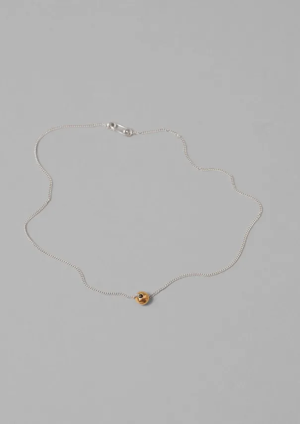 London-based jeweller Sally Lacock uses a recycled sterling silver chain and a 23ct gold-plated bead to create this seed necklace, which draws on botanical themes of growth, with a focus on renewal. Shaped with a smooth, charm suspended from the curb-link chain, then finished with a coordinating T-bar clasp. Details Recycled sterling silver with 23ct gold plated seed. Store in acid free tissue in a soft cotton bag in moisture free environment. Gently clean by soaking in tepid water with some mild liquid soap and dry thoroughly. To remove tarnish clean gently with a non abrasive silver polishing cloth. Made in the United Kingdom.42cm in length.