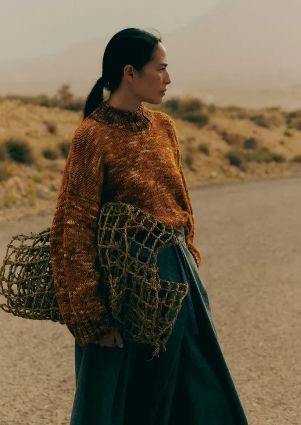 Our marl sweater is knitted with local wool and hand-dyed then hand-framed by artisans supported by Manos del Uruguay, a non-profit organisation founded in 1968 to support women from rural areas in Uruguay. Knitted to an easy shape with set-back shoulders for a relaxed feel, then finished with a high chunky ribbed neckline. Hand-framed wool. Hand-dyed yarn. High neck. Mid-hip length. Ribbed edges. Details Dry clean only. 100% wool. Made in Uruguay.Soft yarns are liable to pill to some extent, even when using those of the best quality. To take good care of them remove any pills using a pilling comb and protect them from sharp items or jewellery that may catch or snag. Size & Fit Oversized. Length: Mid hip. Sleeve: Full length. Neck: High neck. Studio model Nova is 5ft 9in/175cm tall and is wearing a size S/M.