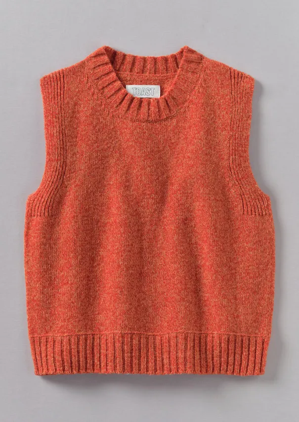 Soft mouline wool yarn brings a depth of colour to our knitted tank. Shaped to a crew neck, finishing at a top-hip length and with integral ribbed edges. Mouline wool. Crew neck. Top-hip length. Integral ribbed edges. Details Hand wash. 100% wool.Made in Portugal.Soft yarns are liable to pill to some extent, even when using those of the best quality. To take good care of them remove any pills using a pilling comb and protect them from sharp items or jewellery that may catch or snag. Size & Fit Regular fit. Length: Top hip. Sleeve: Sleeveless. Neck: Crew.Studio model Nova is 5ft 9in/175cm tall and is wearing a size S.