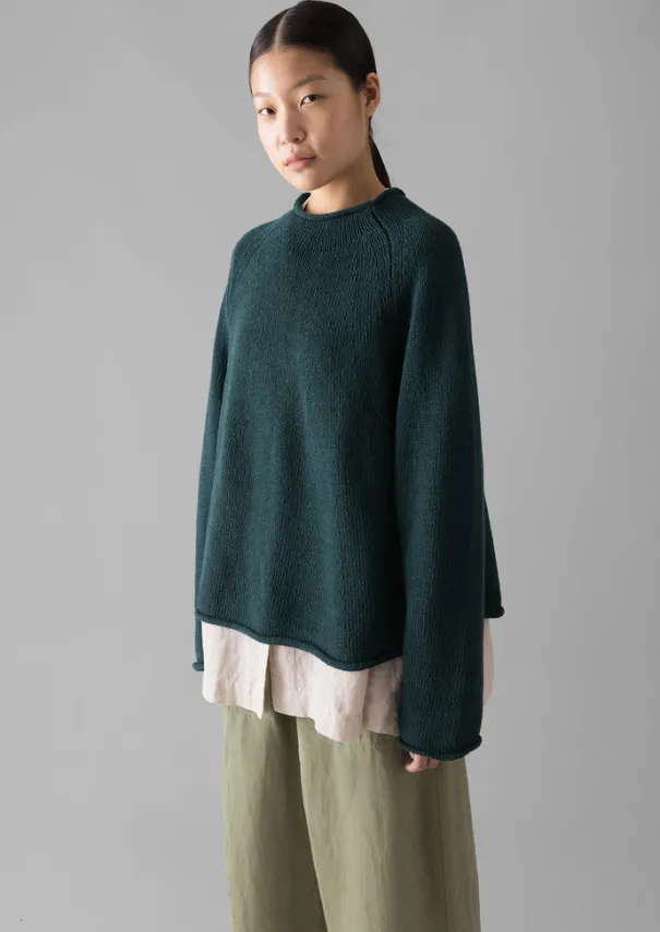 Our swingy, easy sweater has shaping at the yoke for a considered shape. Crafted from a textured, weighty linen and organic cotton blend to a high-neck silhouette with raglan sleeves, then finished with rolled edges. Linen and cotton blend. High neck. Shaped yoke. Raglan sleeves. Rolled edges. Details Hand wash. 55% cotton, 45% linen. Made in China.Soft yarns are liable to pill to some extent, even when using those of the best quality. To take good care of them remove any pills using a pilling comb and protect them from sharp items or jewellery that may catch or snag. Size & Fit Easy fit. Length: Mid hip. Sleeve: Full length. Neck: High neck.Studio model Nova is 5ft 9in/175cm tall and is wearing a size XXS/XS.