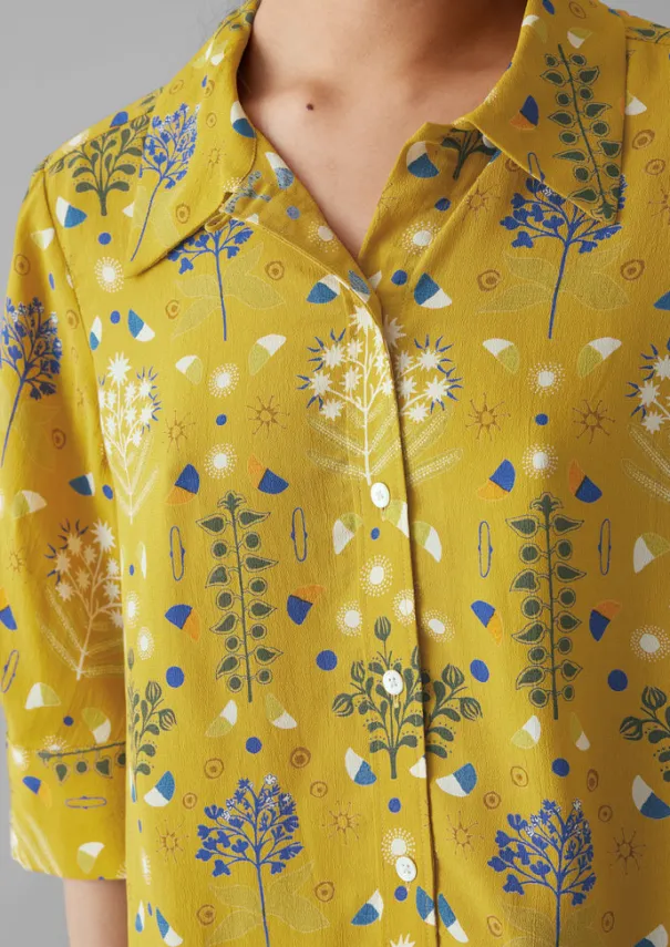 Our crepe shirt is printed with our collector pattern featuring botanical forms. It has mother-of-pearl buttons and gently puffed sleeves. Printed viscose crepe. Point collar. Back gathers. Elbow-length sleeves. Gathered buttoned cuffs. Side hem slits. Low-hip length. Mother-of-pearl buttons. Details Machine wash 30ºC. 100% viscose. Made in India. Size & Fit Regular fit. Sleeve: 3/4 length.Studio model Nova is 5ft 9in/175cm tall and is wearing a size 8.